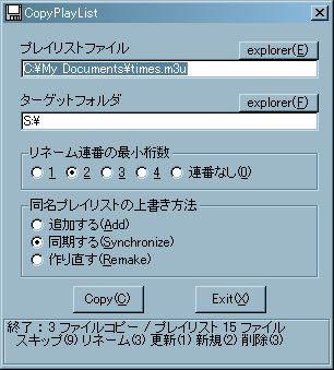 安めのポータブルオーディオ用のミニツールで、プレイリストのファイルに連番を付けながらコピーします。