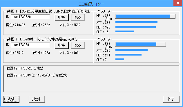 nico_fighter.zip Size:34k動作環境:Windows Excel2010(VBAマクロ)、もう少し古いVerでも動くかも